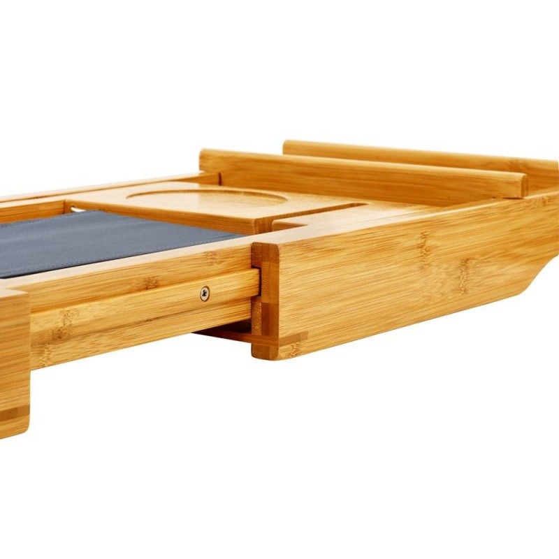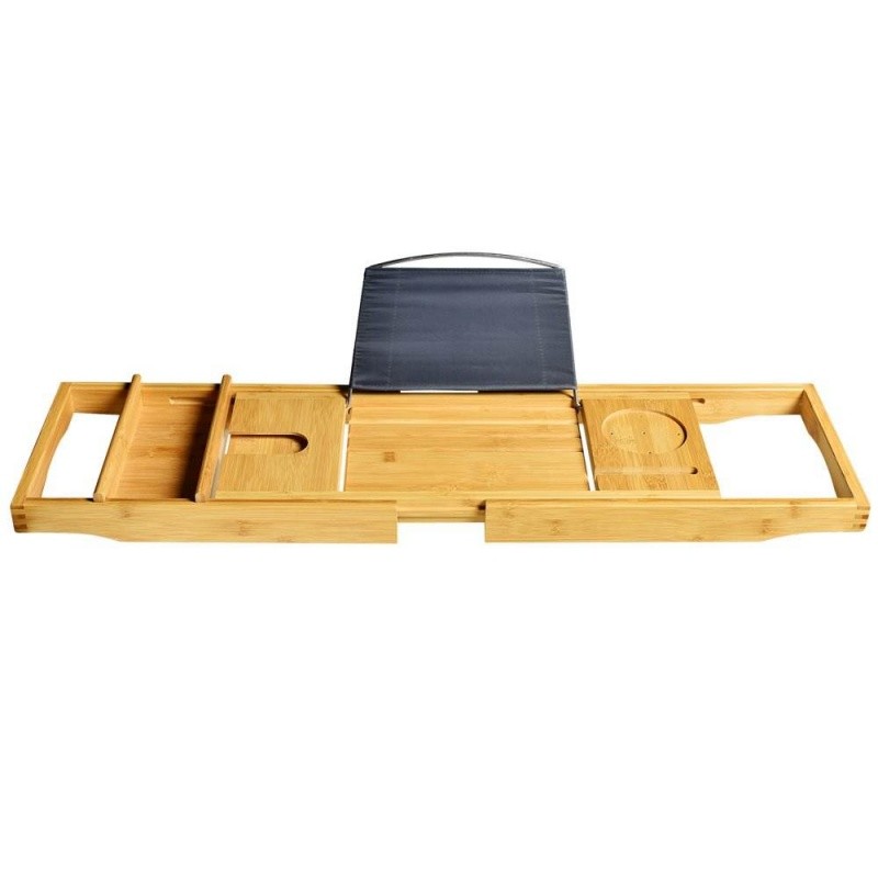 Bamboo Bathtub Caddy Tray with Wine Glass Holder Book Stand Bathroom Bath Caddy Tray Organizer with Extending Sides
