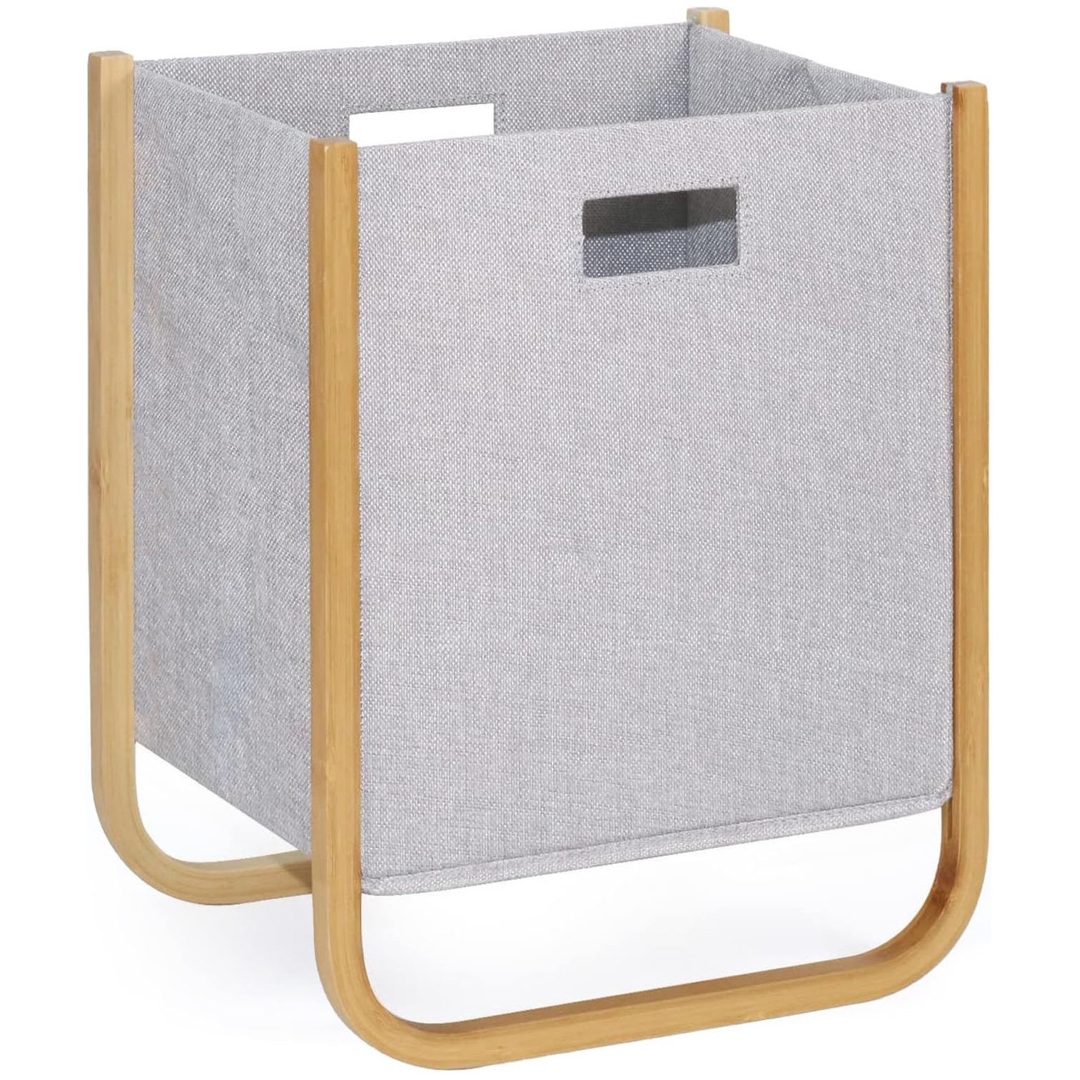 Natural Bamboo Frame and Fabric Portable Thickened Large Capacity Foldable Laundry Basket with Handle